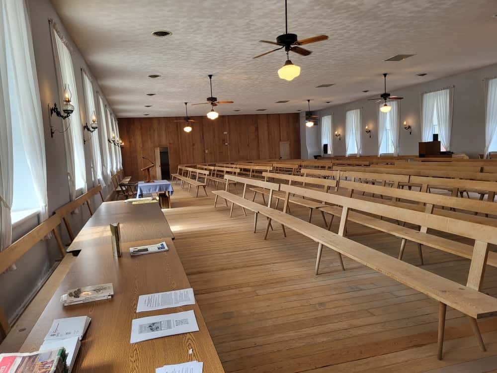 The conference was hosted in the historic (and still active church) of the Amana Colonies, a group of seven communal villages built by German Pietists in 1855. It was cool (although at times not the most comfortable) to sit on hand-made wooden benches, to think about the long and complicated relationship between intentional communities’ history and that of american colonization in westward expansion — in the case of the amana colonies, a pioneering moment in intentional, communal living in iowa also meant the purchase and takeover of thousands of acres of indigenous lands.